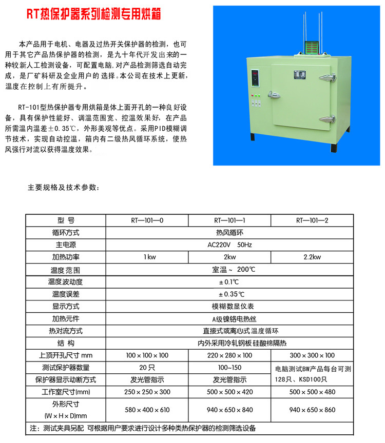 產(chǎn)品型號(hào):RT熱保護(hù)器檢測(cè)烘箱